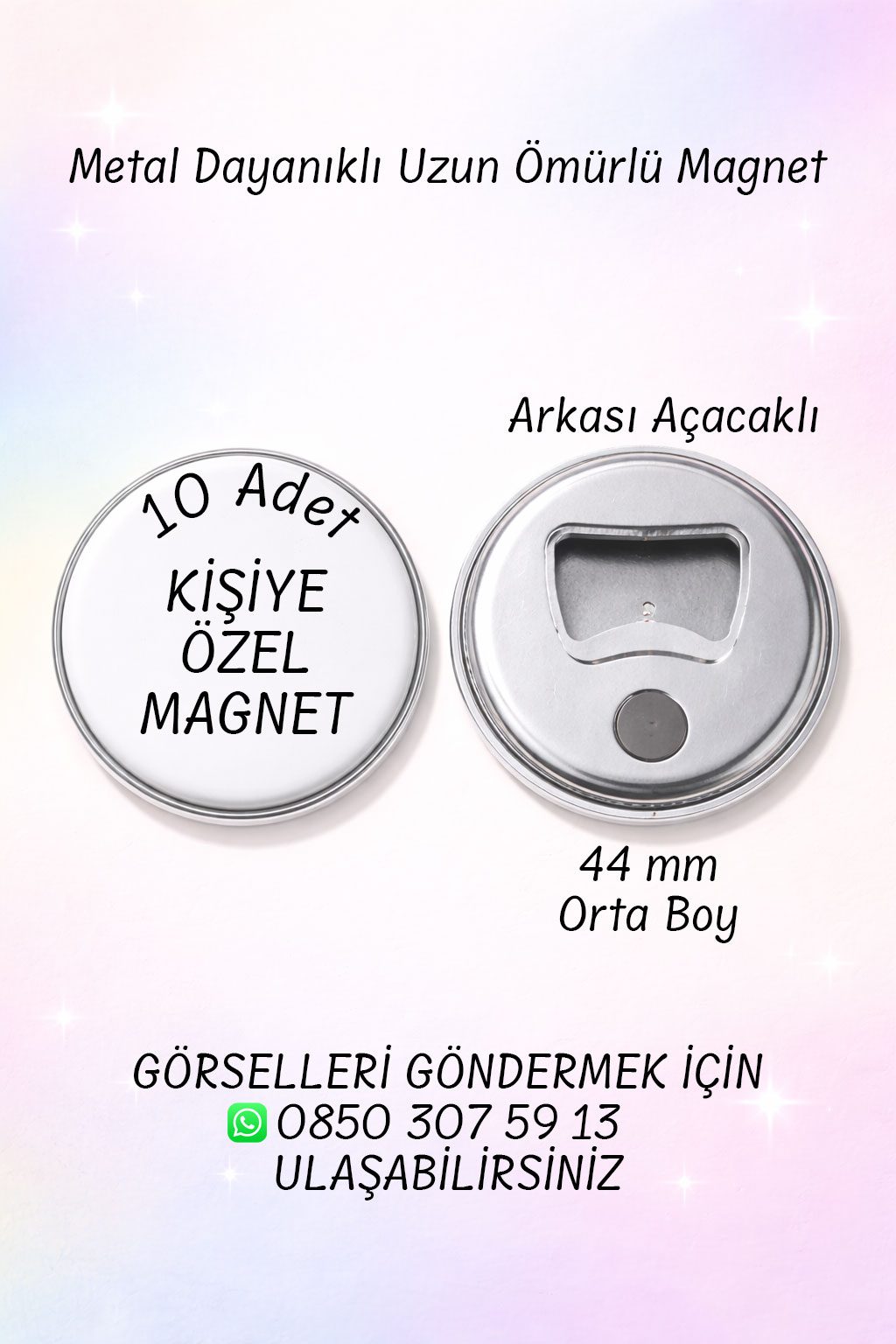 10 Adet Kişiye Özel 44mm Magnetli Açacak | Metal Magnet Açacak | Parti, Etkinlik ve Özel Gün Hediyesi