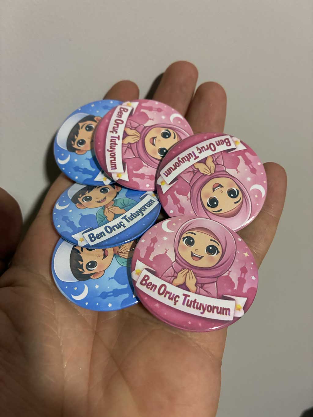 Ben oruç tutuyorum kız rozet, Ramazan ayında çocukların oruç heyecanını paylaşmaları için özel olarak tasarlanmış anlamlı bir üründür. 44mm boyutundaki bu rozet, hem dikkat çekici hem de günlük kullanım için ideal ölçüdedir. Çocukların Ramazan coşkusunu yansıtmak ve bu özel ibadeti gururla ifade etmelerini sağlamak amacıyla hazırlanmıştır.