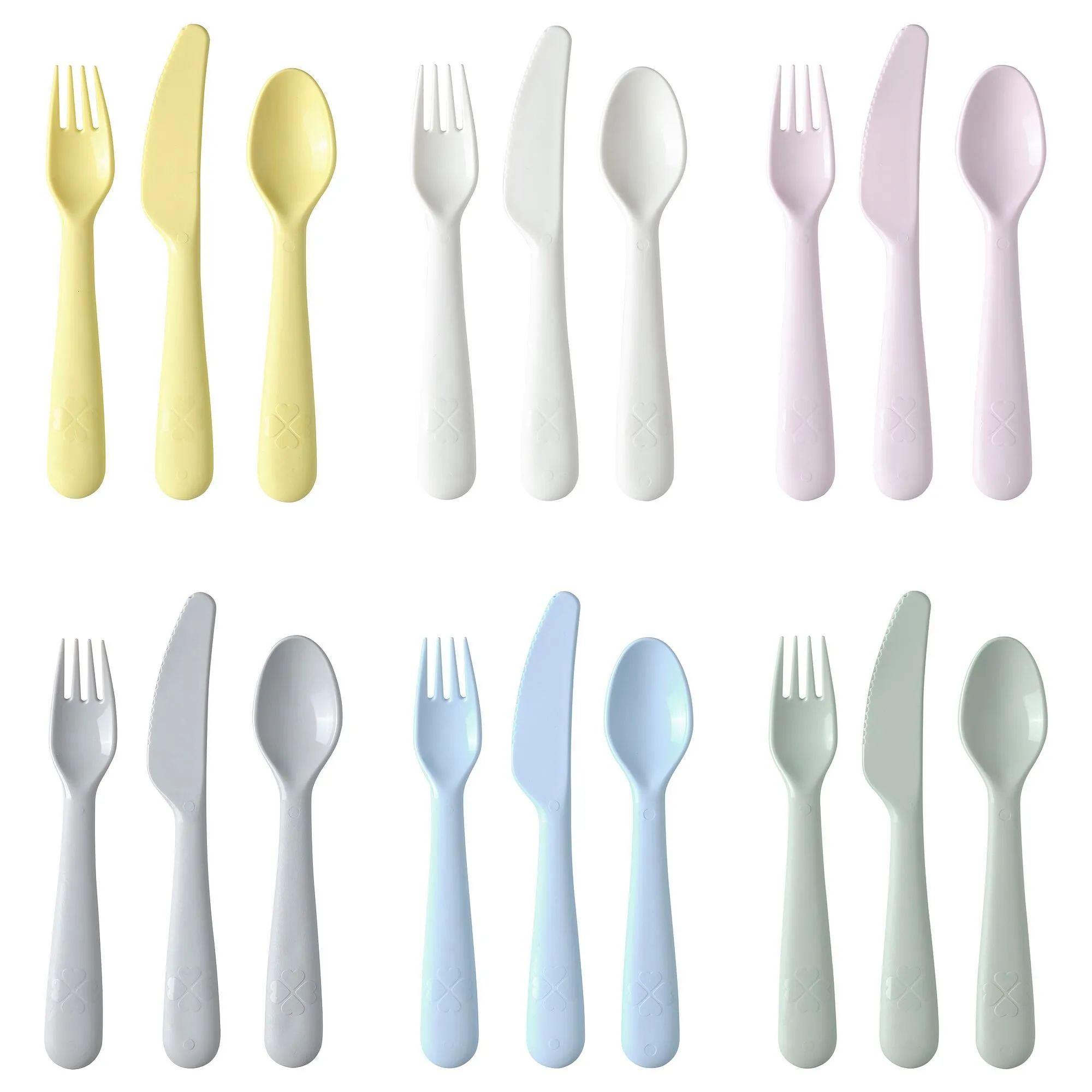 IKEA KALAS 18 parçalık bebek ve çocuk çatal-kaşık-bıçak takımı ile minikler için güvenli ve eğlenceli bir yemek deneyimi yaratın. Renkli, hafif ve dayanıklı parçalar, çocukların kendi başına yemek yemeyi öğrenmesini kolaylaştırır. Bulaşık makinesinde yıkanabilir yapısı sayesinde pratik temizlik sağlar ve günlük kullanımda uzun ömürlü performans sunar. Pastel renkleriyle sofralara neşe katar.