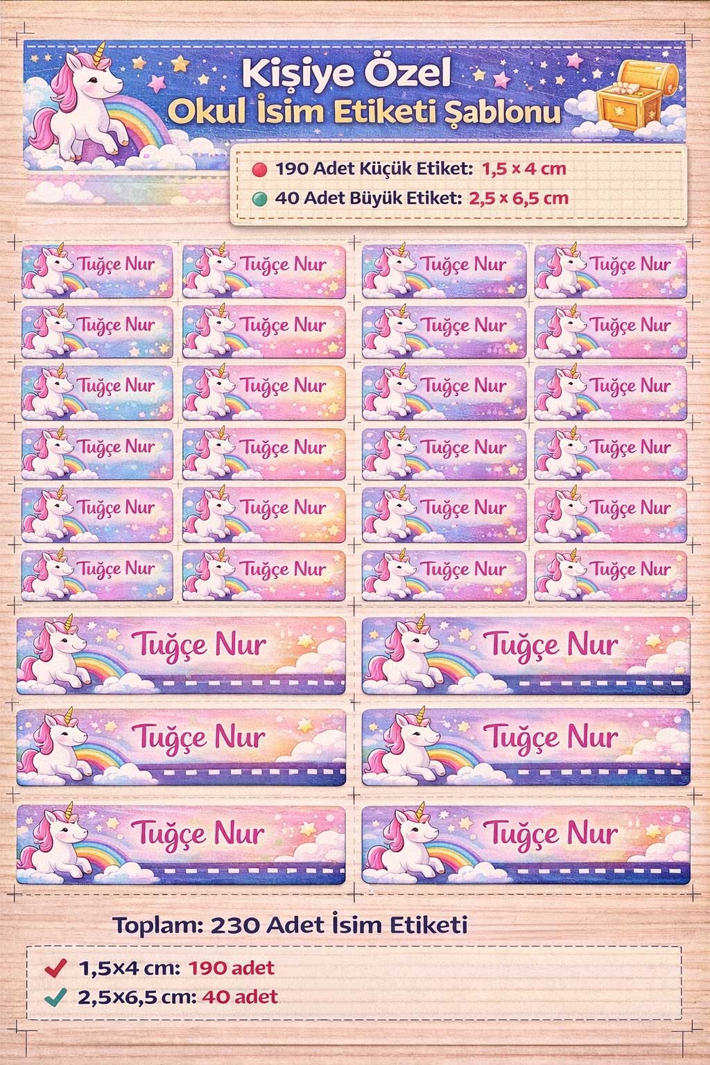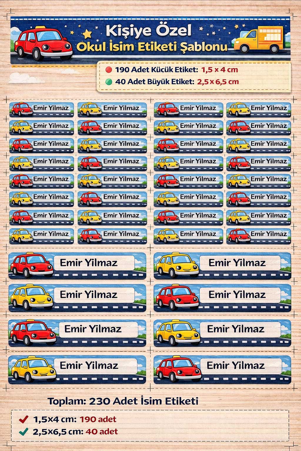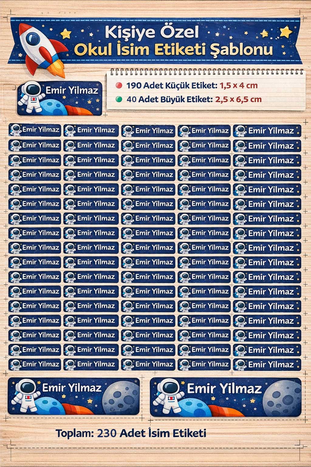 Kişiye özel okul etiketi 230 adet seti, hem pratik hem de ekonomik bir çözüm sunar. Uzun ömürlü kullanım, güçlü yapışkan ve suya dayanıklı yapı sayesinde okul yılı boyunca güvenle kullanılabilir. Çocukların eşyalarını düzenli ve kolay ayırt edilebilir hale getirmek için ideal bir üründür.